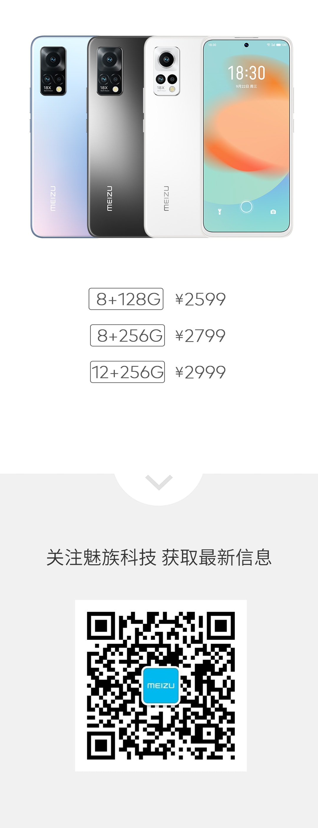 这一次,我们让 10.7 亿种色彩在魅族 18X 的 6.67 英寸 OLED 屏幕上流溢,更细腻的色彩过渡,让落日余晖的渐变自然柔和;更深度的色彩显示,让每一抹极光在屏幕上油然跃动。
