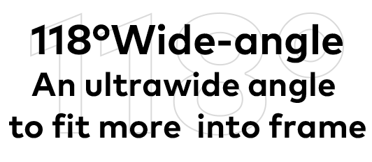 With the 118° wide camera, the frame is wide enough for group photos or magnificent sights. Whatever you like, put then all in one shoot