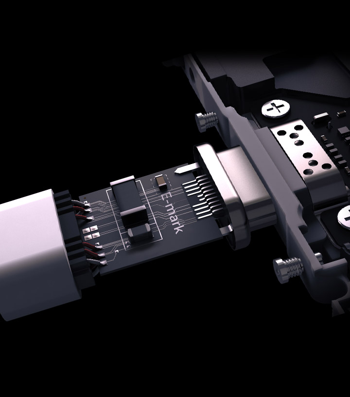 We have redesigned our data cable. The new one can carry up to 160W of power, with more than 3 times the safety margin. E-Mark, the smart safety chip recommended by USB IF, provides a smart dynamic monitoring protection. This type of cable costs three more times, but it is highly effective in performance.